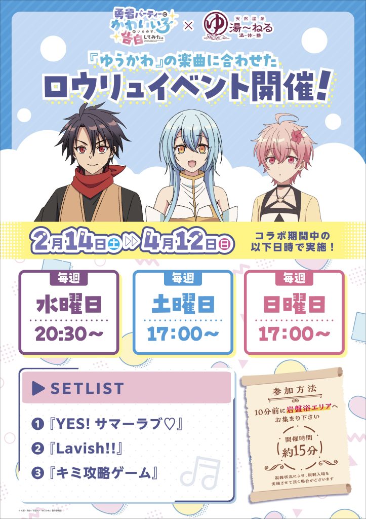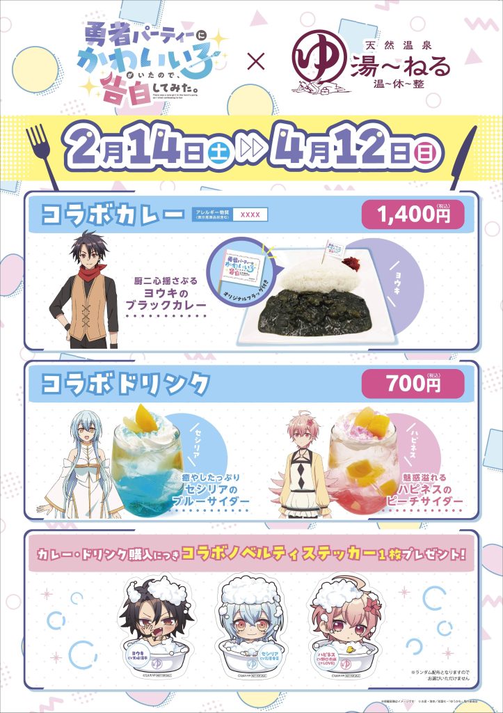 『勇者パーティーにかわいい子がいたので、告白してみた。』と「天然温泉湯~ねる」コラボは明日から開催!